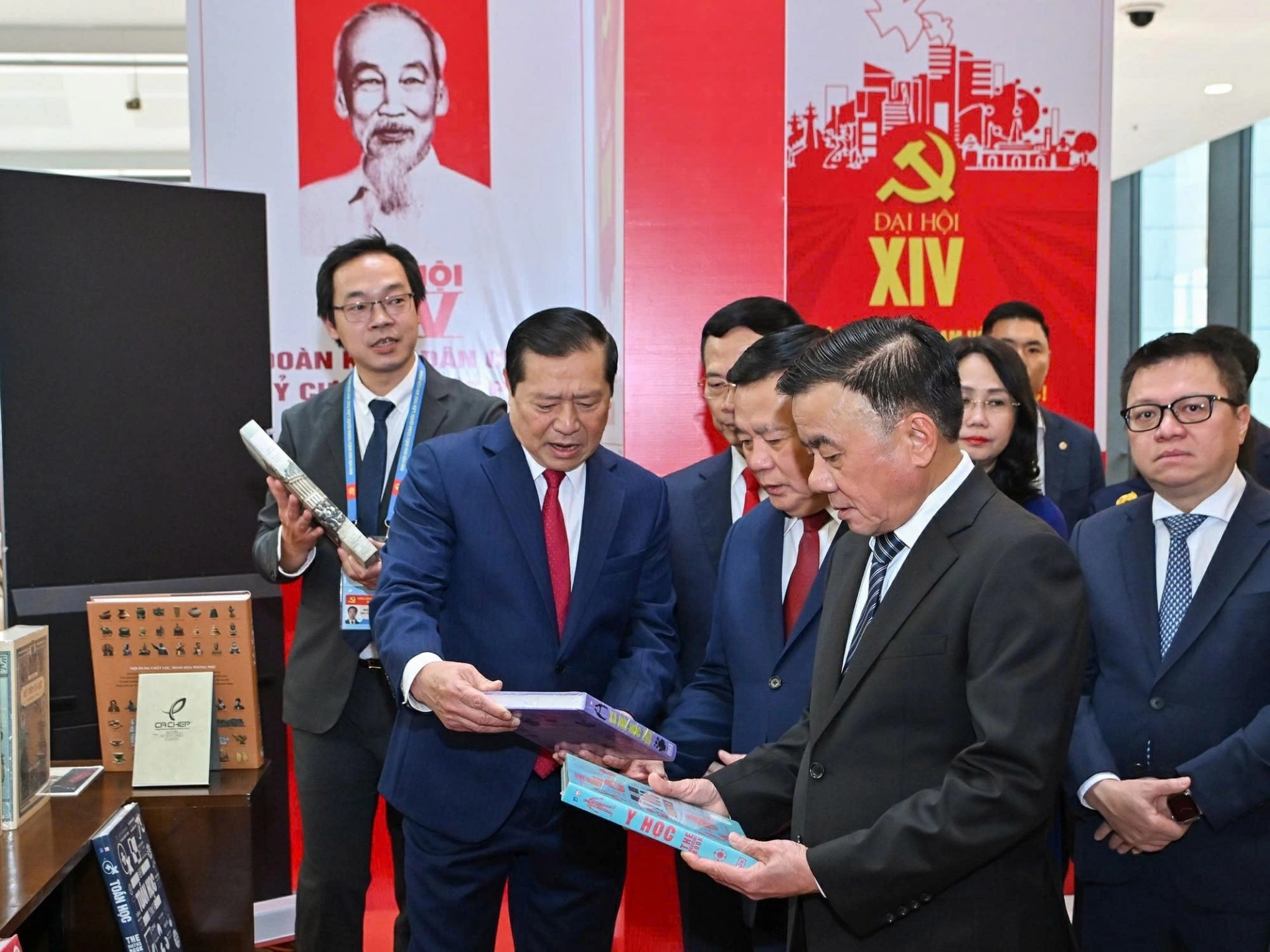 Các đại biểu tham quan trưng bày trong không gian Đại hội tại lễ khai trương Trung tâm Báo chí Đại hội XIV của Đảng, ngày 14-1-2026. Ảnh: Thủy Nguyên