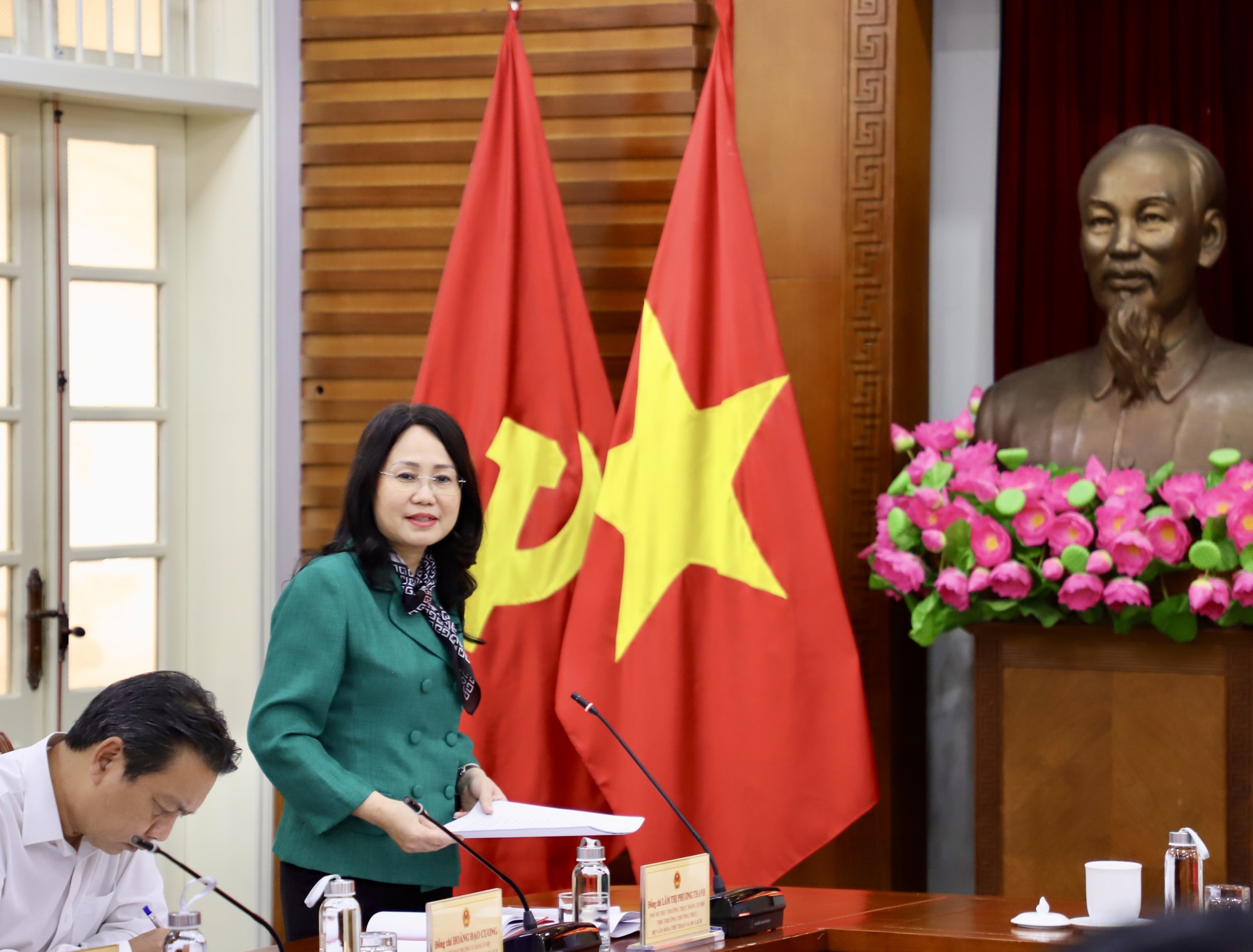 Ủy viên Ban Chấp hành Trung ương Đảng, Phó Bí thư Thường trực Đảng ủy, Thứ trưởng Thường trực Bộ VHTTDL Lâm Thị Phương Thanh báo cáo kết quả Hội nghị lần thứ hai Ban chấp hành Trung ương Đảng khóa XIV.