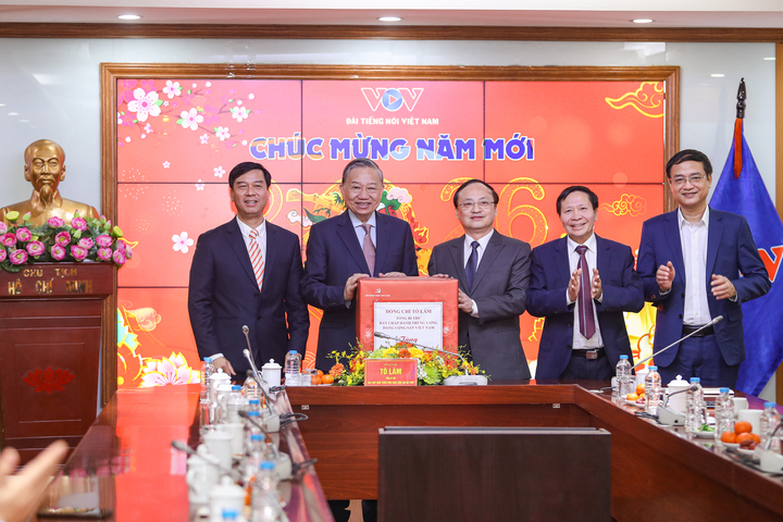 Trong không khí mừng Đảng, mừng Xuân, mừng đất nước đổi mới, chào mừng thành công Đại hội XIV của Đảng và chuẩn bị đón Tết Nguyên Đán Bính Ngọ 2026, sáng 14/2, Tổng Bí thư Tô Lâm tới thăm, chúc Tết, động viên cán bộ, công nhân viên, kỹ thuật viên Đài TNVN (VOV) và Đài Truyền hình Việt Nam (VTV).