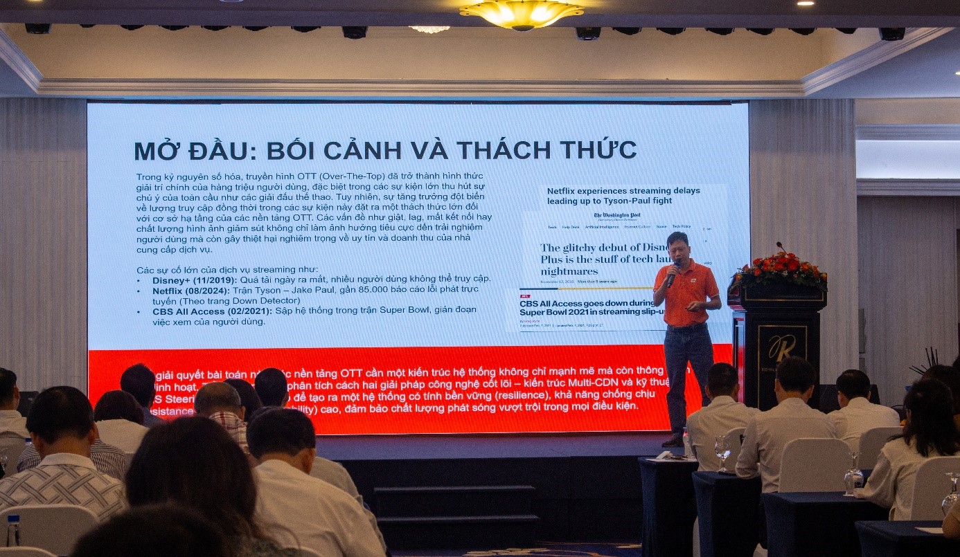 Ảnh: Diễn giả chia sẻ về giải pháp phát triển dịch vụ OTT TV tại Việt Nam (Abei).