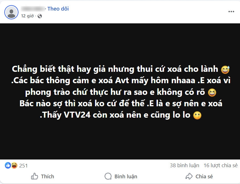 Một người dùng Facebook thừa nhận xóa avatar vì... phong trào